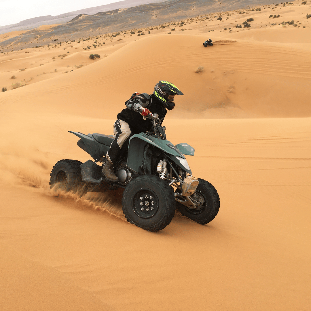 This cost comes with a safe and convenient pickup and drops off from the desired location to a feasible point. We understand how our customers require the ultimate support to get picked up and reach their hotel or resident after a long adventurous day. Thus, we make all the required arrangements according to ease to facilitate them and to keep them happy throughout the trip. Also, we never compromise in terms of safety for our travelers. They get all the guidelines exclusively from our experts of quad biking for an unforgettable quad bike for 30 Minutes in Dubai. Inclusions of this package also have all the safety equipment the biker requires during the quad bike ride, like helmets, boots, gloves, chest protector and so on. In short, we will take care of our visitors very well and arrange an awesome adrenaline rush for them as well as for their loved ones, accompanied by them.